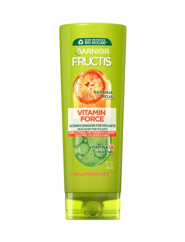 Fructis Amaciador Vitamin Force é alimentado por um super duo de ingredientes, um super fruto de origem natural, a laranja vermelha e poderosos activos científicos, Vitamina C e Biotina, para fortalecer o cabelo das raízes até às pontas.