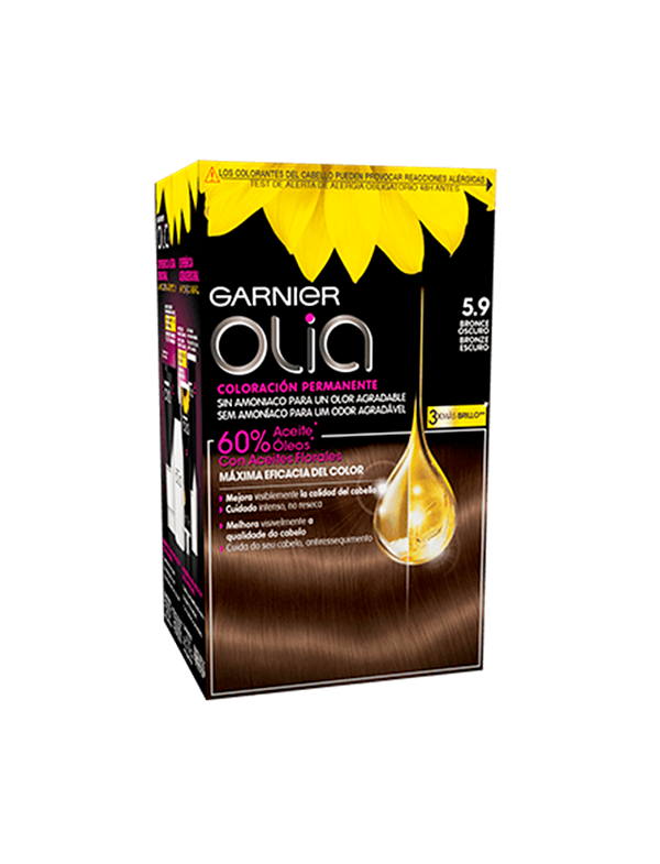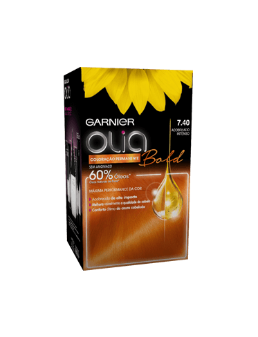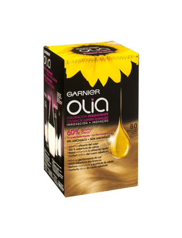 Descobre a coloração louro escuro Olia, longa duração sem amoníaco para um odor agradável e com óleo potenciador da cor